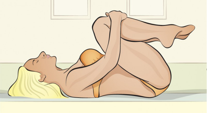 Algunos la llaman postura de la mariposa: recuéstate sobre tu espalda, levanta las rodillas, junta los talones de los pies y deja caer con cuidado las rodillas a los lados.