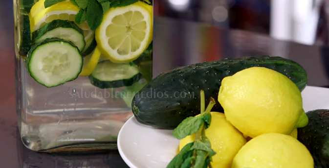 Cortar un pepino en rodajas o en trozos, triturar el puñado de hojas de menta y añadirlos en una jarra en un litro de agua y rodajas de limón. Dejarlo reposar toda la noche y tomar al día siguiente.